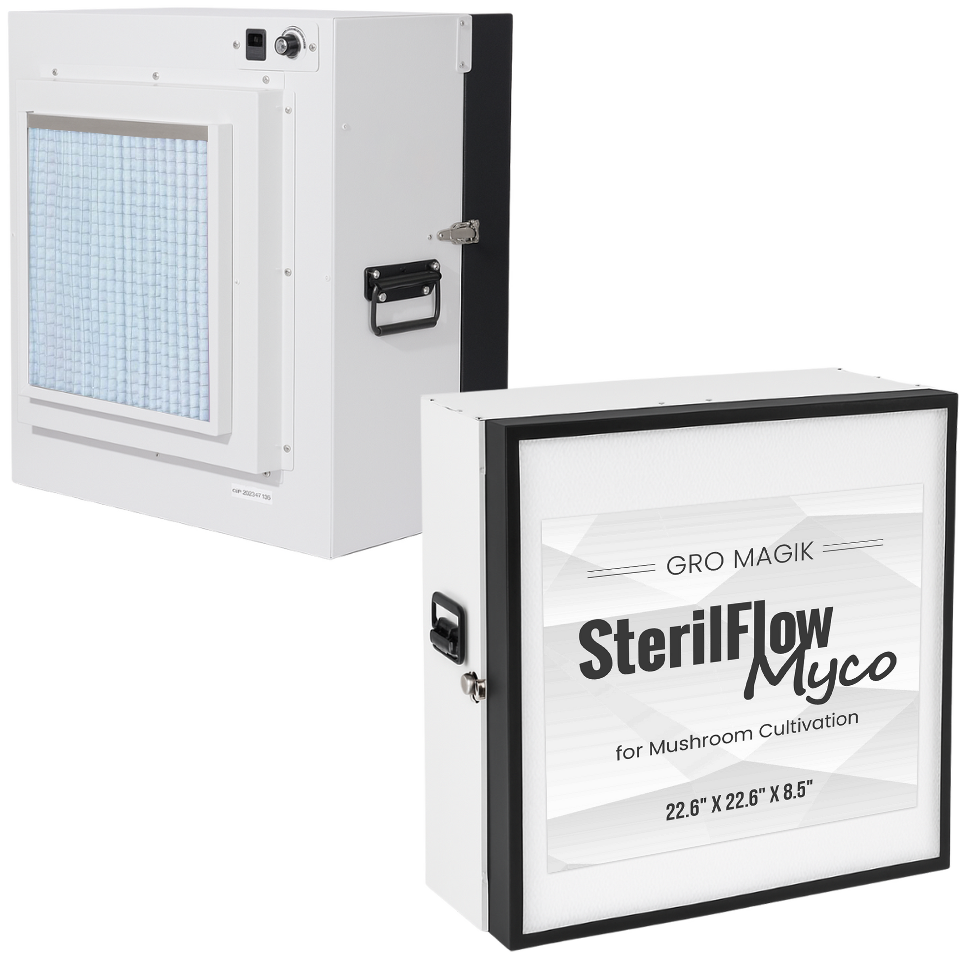 Use the Gro Magik 2 x 2 laminar flow hood to do sterile laboratory mushroom growing prep work in most any space.