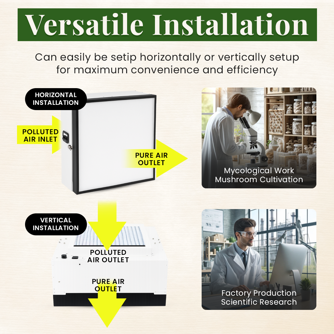With Gro Magik laminar flow hood, you can effortlessly turn any space into a clean adaptable portable sterile laboratory, for use in a wide range of applications. Experience the ease of maintaining sterile lab like cleanliness, no matter where you are. Whether it's a coat closet, or even your basement, our flow hoods allow the use of sterile laboratory practices to ensure mycological success.