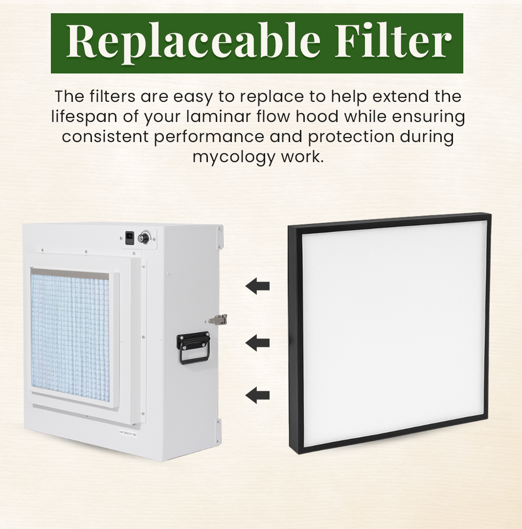 Our midsized laminar flow hood is designed for the serious hobbyist. Unlike the tiny flow hoods on the market that limit your abilities to design a smooth work flow, our midsized flow hood will give you plenty of room to do bulk lab work, like inoculating grain bags, pouring agar plates, and grain to grain transfers. The larger surface area gives you more flexibility with the size and shapes of bags that will work for your grain and substrate needs. With more space to do sterile prep work in, you can be more efficient with your work, which will save valuable time in your day.